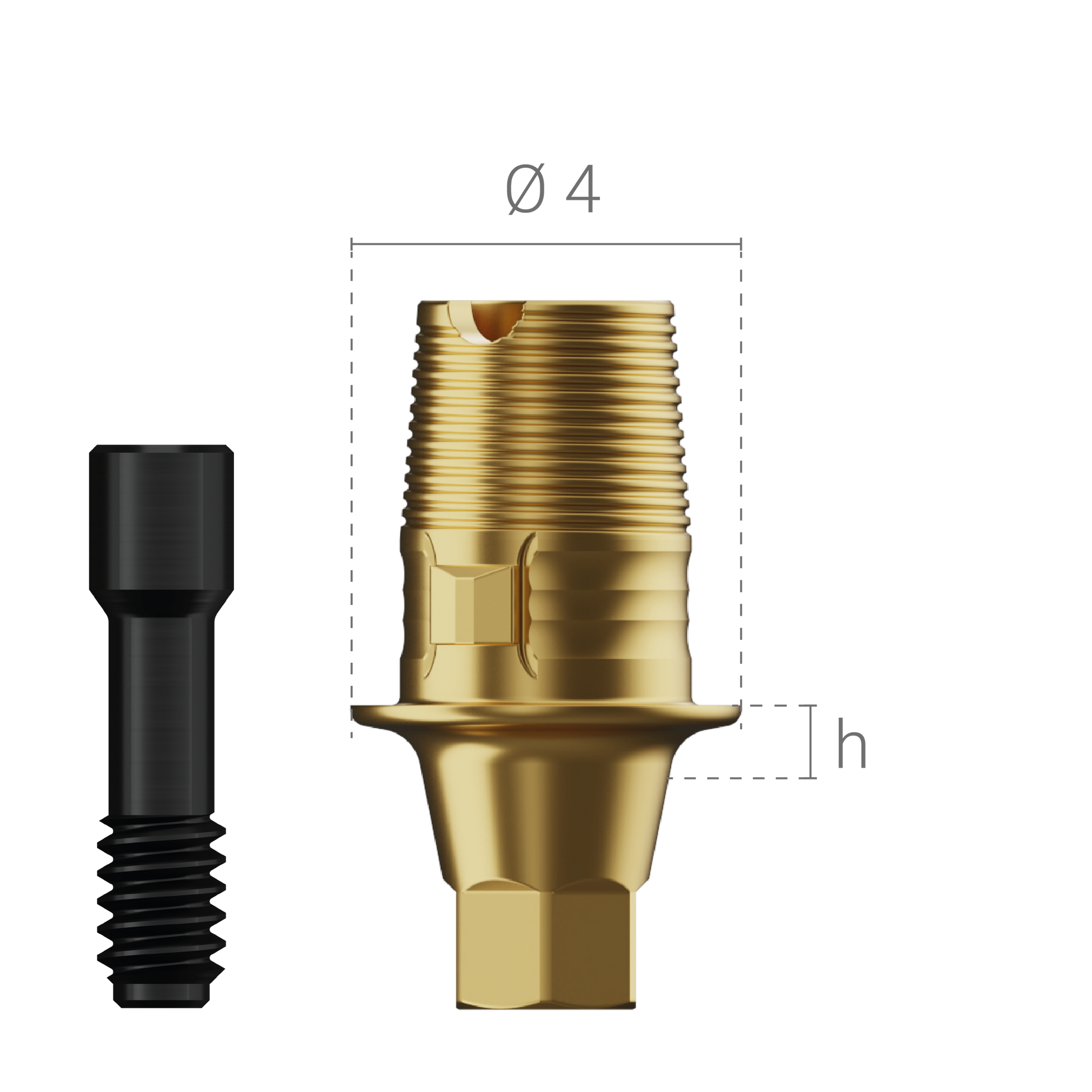 L'interface permet de concevoir et de fabriquer en technique CAD-CAM un pilier personnalisé ou une couronne transvissée en E.max ou en zircone. Leur couleur dorée due à leur surface de nitrure de titane leur confère un meilleur résultat esthétique à travers une dent ou une gencive.