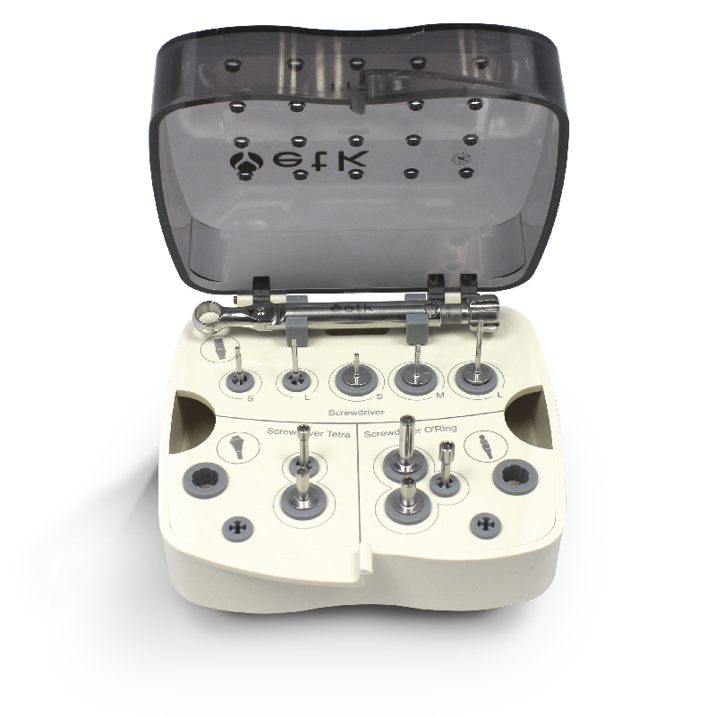 Toutes nos trousses de chirurgie sont conçues pour optimiser la précision et l'efficacité lors des interventions chirurgicales implantaires. Elles présentent plusieurs caractéristiques qui facilitent le travail des chirurgiens dentistes tout en garantissant des résultats de haute qualité pour les patients : des tableaux de protocoles codifiés, des forets numérotés avec une illustration des instruments, un code couleur selon les diamètres d'implants et un réglet gradué.